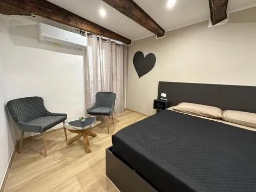 Spaziosa camera matrimoniale climatizzata con pareti insonorizzate e bagno privato con doccia e bidet. L’alloggio presenta 1 letto.