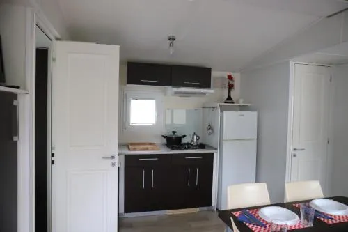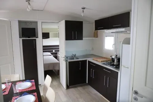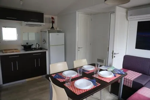 This mobile home includes 1 living room, 2 separate bedrooms and 2 bathrooms with a walk-in shower and free toiletries. In the kitchen, guests will find a stovetop, a refrigerator, a dishwasher and kitchenware. This wheelchair accessible mobile home has a tea and coffee maker, a seating area with a flat-screen TV and a roll-in shower. The unit has 5 beds.
