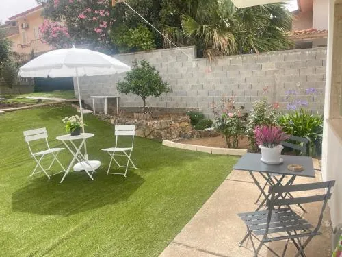 This holiday home's special feature is the fireplace. Featuring a private entrance, this air-conditioned holiday home comprises a kitchen, 2 bedrooms and 1 bathroom with a shower and a bidet. Guests will find a stovetop, a refrigerator, kitchenware and a microwave in the kitchen. The holiday home also provides guests with a barbecue. The holiday home features tiled floors, a seating area with a flat-screen TV, a washing machine, a tea and coffee maker as well as garden views. The unit offers 4 beds.