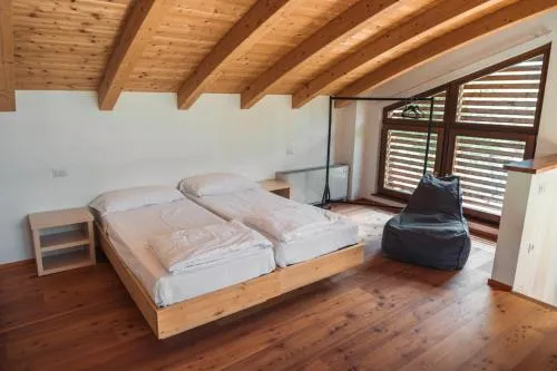 Featuring a private entrance, this chalet is comprised of 1 living room, 2 separate bedrooms and 1 bathroom with a shower and a bidet. Guests will find a stovetop, a refrigerator, kitchenware and a microwave in the fully equipped kitchenette. The chalet also has a barbecue. The chalet features parquet floors, a seating area with a flat-screen TV, a dining area, a wardrobe as well as garden views. The unit offers 4 beds.