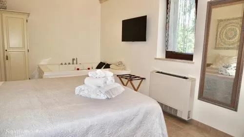 The hot tub and fireplace are the special features of this double room. Providing free toiletries and bathrobes, this double room includes a private bathroom with a bath, a shower and a bidet. The air-conditioned double room provides a flat-screen TV with streaming services, a private entrance, soundproof walls, a tea and coffee maker as well as garden views. The unit offers 1 bed.