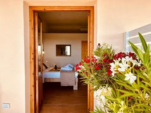 Camera matrimoniale climatizzata dotata di ingresso indipendente, terrazza con vista sul mare e bagno privato completo di doccia. L’alloggio dispone di 1 letto.