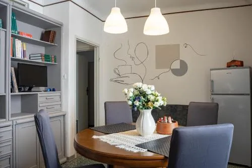 Featuring a private entrance, this holiday home also comprises 2 bedrooms, a seating area and 1 bathroom with a shower and a bidet. The well-fitted kitchen features a stovetop, a refrigerator, kitchenware and an oven. The holiday home provides a washing machine, a tea and coffee maker, a dining area, a wardrobe and a flat-screen TV. The unit offers 2 beds.