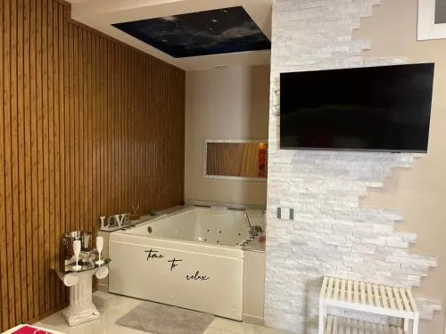 Bollitore tè/macchina caffè, Minibar, Doccia, Vasca, Cassaforte, TV, Aria condizionata, Asciugacapelli, Vasca idromassaggio, Accappatoio, Vasca da bagno con idromassaggio, Frigorifero, Scrivania, Zona soggiorno, Prodotti da bagno in omaggio, WC, Bagno privato, Riscaldamento, Pantofole, Vasca o doccia, Servizi igienici aggiuntivi, TV a schermo piatto, Ingresso indipendente, Divano, Insonorizzazione, Pavimento in marmo o in piastrelle, Bollitore elettrico, Zanzariera, Armadio o guardaroba, Bidet, Soluzioni anallergiche, Macchina da caffè, Terrazza, Asciugamani, Biancheria per la casa, Arredamento da esterno, Intera unità situata al piano terra, Indipendente, Appartamento privato in edificio, Stand appendiabiti, Carta igienica, Teli, Bottiglia d'acqua, Calici da vino, Lettini e culle per bambini, Shampoo, Bagnoschiuma, Cuffia da doccia, Presa elettrica vicino al letto, Cuscino ipoallergenico, Vista cortile interno, Vista su strada tranquilla, Servizio streaming (per es. Netflix), Allarme antifumo, Estintori, Purificatori d'aria, Aria condizionata indipendente in ogni alloggio, Gel igienizzante per le mani