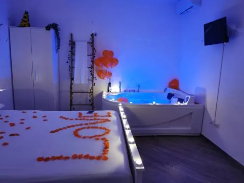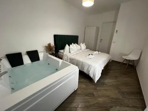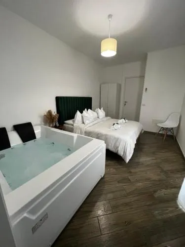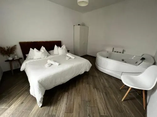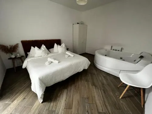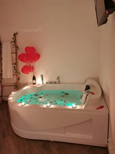 This double room's standout feature is the hot tub. Offering free toiletries and bathrobes, this double room includes a private bathroom with a bath, a shower and a bidet. The double room's kitchen, which has a refrigerator, is available for cooking and storing food. The air-conditioned double room offers a flat-screen TV with streaming services, a tea and coffee maker, a dining area, a wardrobe as well as garden views. The unit has 1 bed.