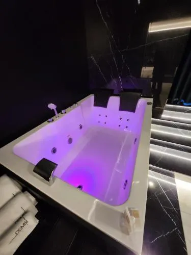Suite con vasca idromassaggio. Suite composta da 1 soggiorno, 1 camera da letto separata e 1 bagno con vasca e set di cortesia. Questa suite climatizzata offre una terrazza con vista sulla città e una TV a schermo piatto. L’unità presenta 2 letti.
