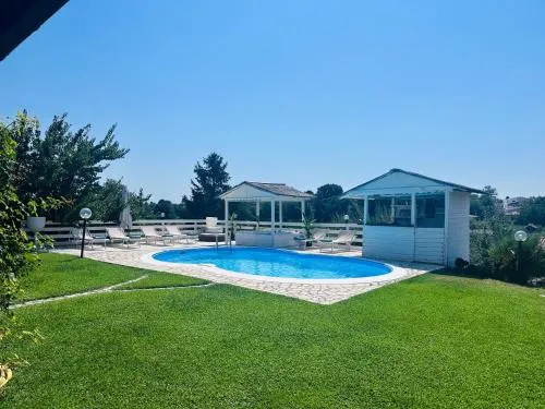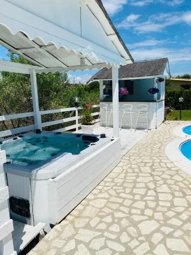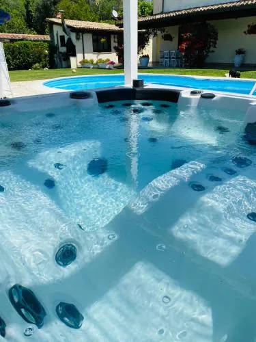 This luxurious villa features a private pool, a hot tub and a fireplace. This spacious villa is comprised of 3 living rooms, 3 separate bedrooms and 2 bathrooms with a shower and a bidet. Guests will find a stovetop, a refrigerator, a dishwasher and kitchenware in the fully equipped kitchen. The villa also has a barbecue. The villa offers a flat-screen TV with cable channels, a washing machine, a coffee machine, a wardrobe as well as garden views. The unit offers 3 beds.