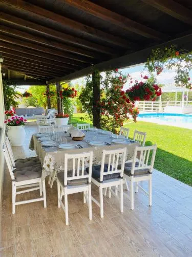 Doccia, TV, Asciugacapelli, Vasca idromassaggio, Ferro da stiro, Frigorifero, Scrivania, Ventilatore, WC, Forno a microonde, Lavastoviglie, Lavatrice, Patio, Bagno privato, Riscaldamento, Cucina, Canali via cavo, Camino, Disponibilità di camere comunicanti, TV a schermo piatto, Divano, Bollitore elettrico, Utensili da cucina, Zanzariera, Piscina privata a uso esclusivo, Armadio o guardaroba, Forno, Piano cottura, Tostapane, Barbecue, Bidet, Vista giardino, Vista piscina, Prodotti per le pulizie, Macchina da caffè, Asciugamani, Biancheria per la casa, Tavolo da pranzo, Arredamento da esterno, Zona pranzo all'aperto, Intera unità situata al piano terra, Stendibiancheria, Carta igienica, Divano letto, Pattumiere, Bagnoschiuma, Presa elettrica vicino al letto, Cuscino non di piume, Accesso con chiavi