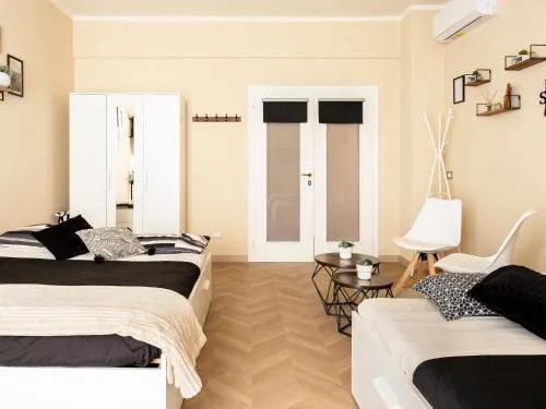 Featuring free toiletries, this quadruple room includes an external private bathroom with a shower, a bidet and a hairdryer. Guests can make meals in the kitchen that features a stovetop, a refrigerator, kitchenware and an oven. The air-conditioned quadruple room features a flat-screen TV with streaming services, a washing machine, a tea and coffee maker, a seating area as well as garden views. The unit has 3 beds.