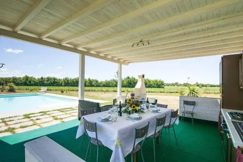 Doccia, TV, Aria condizionata, Asciugacapelli, Ferro da stiro, Angolo cottura, Frigorifero, Ferro e asse da stiro, Zona soggiorno, WC, Forno a microonde, Lavastoviglie, Lavatrice, Patio, Bagno privato, Riscaldamento, Canali satellitari, Cucina, TV a schermo piatto, Ingresso indipendente, Divano, Vista, Zona pranzo, Utensili da cucina, Zanzariera, Asciugamani/lenzuola disponibili a pagamento, Piscina privata a uso esclusivo, Armadio o guardaroba, Forno, Piano cottura, Tostapane, Barbecue, Bidet, Vista giardino, Vista piscina, Macchina da caffè, Asciugamani, Biancheria per la casa, Tavolo da pranzo, Seggiolone, Arredamento da esterno, Zona pranzo all'aperto, Intera unità situata al piano terra, Indipendente, Carta igienica, Divano letto, Teli, Calici da vino, Lettini e culle per bambini, Vista cortile interno