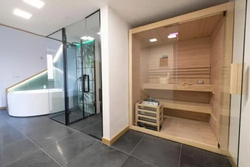 Bollitore tè/macchina caffè, Doccia, Vasca, TV, Aria condizionata, Asciugacapelli, Vasca idromassaggio, Balcone, Accappatoio, Vasca da bagno con idromassaggio, Frigorifero, Scrivania, Prodotti da bagno in omaggio, WC, Bagno privato, Riscaldamento, Cabina armadio, Vasca o doccia, TV a schermo piatto, Pavimento in marmo o in piastrelle, Vista, Parquet o pavimento in legno, Bollitore elettrico, Sauna, Piscina privata a uso esclusivo, Armadio o guardaroba, Bidet, Vista mare, Macchina da caffè, Vista città, Asciugamani, Biancheria per la casa, Piani superiori accessibili solo tramite scale, Stand appendiabiti, Carta igienica, Doccia a filo pavimento, WC rialzato, Teli, Bottiglia d'acqua, Pattumiere, Calici da vino, Bagnoschiuma, Presa elettrica vicino al letto, Cuscino non di piume, Cuscino ipoallergenico, Accesso con chiavi, Aria condizionata indipendente in ogni alloggio