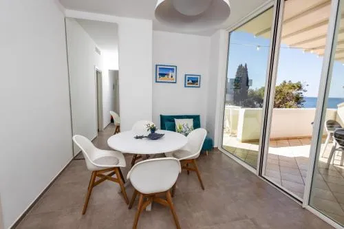 Doccia, TV, Aria condizionata, Asciugacapelli, Ferro da stiro, Angolo cottura, Balcone, Frigorifero, Ferro e asse da stiro, Zona soggiorno, WC, Forno a microonde, Lavastoviglie, Lavatrice, Bagno privato, Riscaldamento, Cucina, Vasca o doccia, TV a schermo piatto, Ingresso indipendente, Pavimento in marmo o in piastrelle, Vista, Utensili da cucina, Zanzariera, Armadio o guardaroba, Forno, Piano cottura, Tostapane, Vista mare, Prodotti per le pulizie, Terrazza, Asciugamani, Biancheria per la casa, Tavolo da pranzo, Arredamento da esterno, Zona pranzo all'aperto, Piani superiori accessibili solo tramite scale, Indipendente, Appartamento privato in edificio, Stand appendiabiti, Stendibiancheria, Carta igienica, Doccia a filo pavimento, Pattumiere, Presa elettrica vicino al letto, Cuscino non di piume, Cuscino ipoallergenico, Hotspot portatile, Aria condizionata indipendente in ogni alloggio, Gel igienizzante per le mani