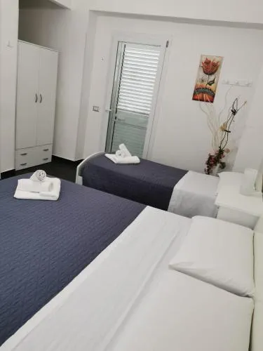 Featuring free toiletries and bathrobes, this triple room includes a private bathroom with a shower, a bidet and a hairdryer. The kitchen features a stovetop, a refrigerator and kitchenware. The air-conditioned triple room features a flat-screen TV with satellite channels, a private entrance, a minibar, a tea and coffee maker as well as sea views. The unit has 2 beds.
