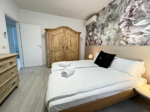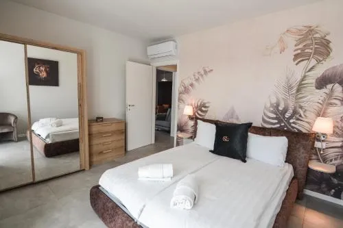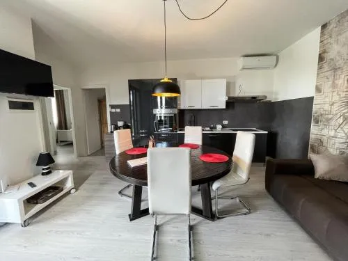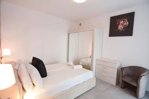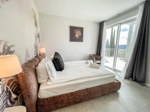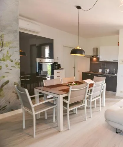 This apartment boasts a pool with a view and a hot tub. Featuring a private entrance, this air-conditioned apartment comprises 1 living room, 2 separate bedrooms and 1 bathroom with a shower and a bidet. Meals can be prepared in the well-fitted kitchen, which comes with a stovetop, a refrigerator, a dishwasher and kitchenware. The spacious apartment provides a washing machine, soundproof walls, a tea and coffee maker, a flat-screen TV with cable channels, as well as lake views. The unit offers 2 beds.
