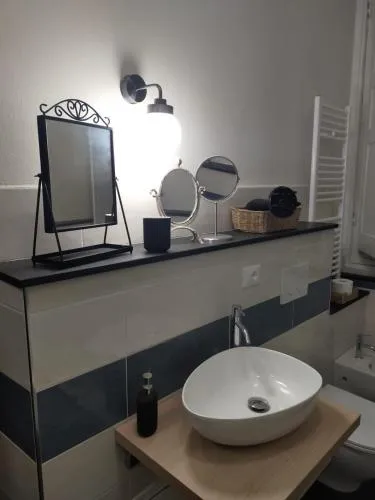 Providing free toiletries and bathrobes, this twin/double room includes a private bathroom with a walk-in shower, a bidet and a hairdryer. In the well-fitted kitchenette, guests will find a refrigerator, a dishwasher, kitchenware and a microwave. This twin/double room features a tea and coffee maker, flat-screen TV, a quiet street view, as well as fruit for guests.
