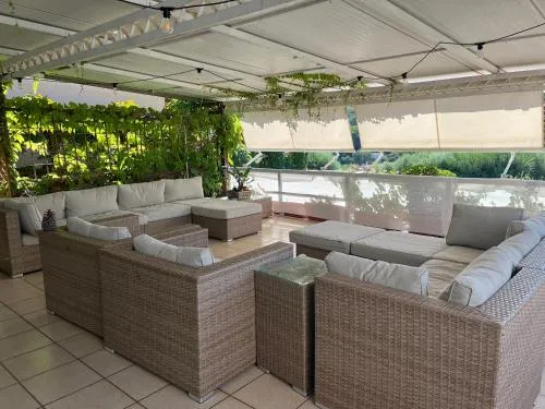 Doccia, TV, Aria condizionata, Asciugacapelli, Ferro da stiro, Angolo cottura, Balcone, Frigorifero, Zona soggiorno, Prodotti da bagno in omaggio, Ventilatore, WC, Forno a microonde, Lavastoviglie, Lavatrice, Bagno privato, Riscaldamento, Cucina, Vasca o doccia, TV a schermo piatto, Ingresso indipendente, Divano, Pavimento in marmo o in piastrelle, Vista, Zona pranzo, Bollitore elettrico, Utensili da cucina, Zanzariera, Armadio o guardaroba, Forno, Tostapane, Barbecue, Bidet, Vista mare, Prodotti per le pulizie, Macchina da caffè, Terrazza, Asciugamani, Biancheria per la casa, Tavolo da pranzo, Seggiolone, Arredamento da esterno, Zona pranzo all'aperto, Semi-indipendente, Stand appendiabiti, Stendibiancheria, Carta igienica, Libri, DVD o musica per bambini, Cancelletti di sicurezza per bambini, Divano letto, Vino/champagne, Bottiglia d'acqua, Pattumiere, Calici da vino, Lettini e culle per bambini, Shampoo, Bagnoschiuma, Presa elettrica vicino al letto, Adattatore, Cuscino non di piume, Cuscino ipoallergenico, Servizio streaming (per es. Netflix), Allarme antifumo, Accesso con chiavi, Rilevatore di monossido di carbonio, Aria condizionata indipendente in ogni alloggio
