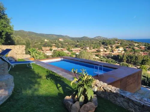This holiday home boasts a pool with a view and a fireplace. Featuring a private entrance, this air-conditioned holiday home consists of 1 living room, 3 separate bedrooms and 2 bathrooms with a shower and a bidet. Guests will find a stovetop, a refrigerator, kitchenware and a microwave in the kitchen. The holiday home also offers a barbecue. Boasting a terrace with sea views, this holiday home also provides a washing machine and a flat-screen TV. The unit offers 6 beds.