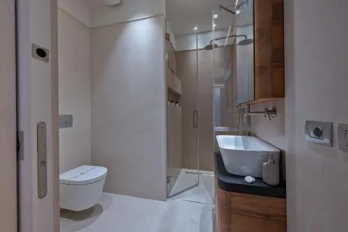 Doccia, TV, Aria condizionata, Asciugacapelli, Vasca idromassaggio, Frigorifero, Ferro e asse da stiro, Zona soggiorno, Prodotti da bagno in omaggio, WC, Lavastoviglie, Patio, Bagno privato, Riscaldamento, Cucina, TV a schermo piatto, Divano, Insonorizzazione, Pavimento in marmo o in piastrelle, Zona pranzo, Utensili da cucina, Armadio o guardaroba, Forno, Piano cottura, Bidet, Soluzioni anallergiche, Prodotti per le pulizie, Macchina da caffè, Vista città, Terrazza, Asciugamani, Biancheria per la casa, Tavolo da pranzo, Arredamento da esterno, Zona pranzo all'aperto, Piani superiori accessibili solo tramite scale, Appartamento privato in edificio, Stand appendiabiti, Carta igienica, Divano letto, Doccia a filo pavimento, WC rialzato, Bottiglia d'acqua, Pattumiere, Calici da vino, Bagnoschiuma, Cuffia da doccia, Presa elettrica vicino al letto, Cuscino ipoallergenico, Servizio streaming (per es. Netflix), Accesso con chiavi, Aria condizionata indipendente in ogni alloggio