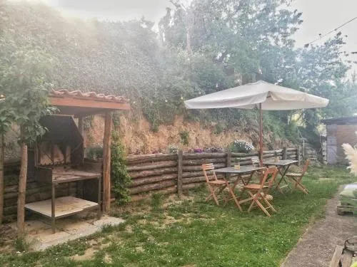Featuring a private entrance, this holiday home also consists of 2 bedrooms, a seating area and 1 bathroom with a shower and a bidet. Guests will find a stovetop, a refrigerator, kitchenware and an oven in the kitchen. The holiday home also offers a barbecue. This holiday home features a tea and coffee maker, flat-screen TV, garden views, as well as chocolate for guests. The unit offers 2 beds.