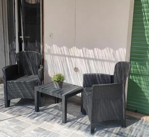 Doccia, TV, Aria condizionata, Asciugacapelli, Ferro da stiro, Angolo cottura, Frigorifero, Ferro e asse da stiro, Prodotti da bagno in omaggio, Ventilatore, WC, Lavatrice, Patio, Bagno privato, Cucina, Canali via cavo, TV a schermo piatto, Divano, Zona pranzo, Utensili da cucina, Zanzariera, Armadio o guardaroba, Piano cottura, Bidet, Macchina da caffè, Terrazza, Asciugamani, Biancheria per la casa, Tavolo da pranzo, Arredamento da esterno, Intera unità situata al piano terra, Appartamento privato in edificio, Stand appendiabiti, Stendibiancheria, Carta igienica, Divano letto, Teli, Bottiglia d'acqua, Cioccolatini o biscotti, Pattumiere, Calici da vino, Lettini e culle per bambini, Shampoo, Bagnoschiuma, Presa elettrica vicino al letto, Cuscino ipoallergenico, Vista cortile interno, Vista su strada tranquilla, Accesso con chiavi, Aria condizionata indipendente in ogni alloggio