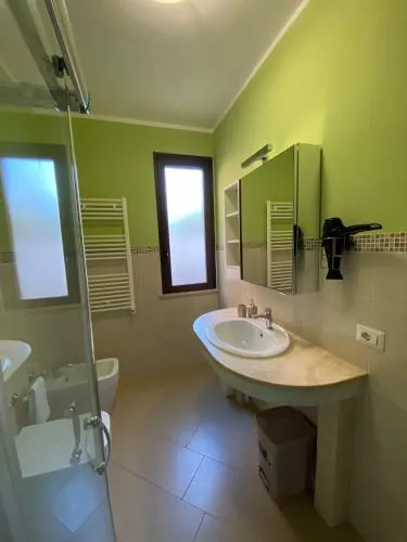 Questa casa vacanze climatizzata con ingresso indipendente e cucina comprende 3 camere da letto e 2 bagni con doccia e bidet. La cucina dispone di piano cottura, frigorifero, lavastoviglie e utensili. La casa vacanze è dotata di TV a schermo piatto con canali via cavo, lavatrice, set per la preparazione di tè e caffè, area salotto e vista sul giardino. L’alloggio presenta 5 letti.
