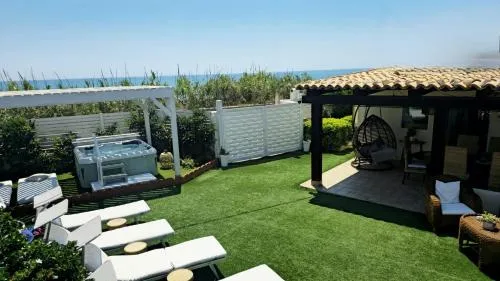 Bollitore tè/macchina caffè, Doccia, TV, Aria condizionata, Asciugacapelli, Vasca idromassaggio, Ferro da stiro, Angolo cottura, Radio, Frigorifero, Ferro e asse da stiro, Zona soggiorno, Prodotti da bagno in omaggio, WC, Forno a microonde, Lavastoviglie, Lavatrice, Patio, Bagno privato, Riscaldamento, Cucina, Vasca o doccia, Servizi igienici aggiuntivi, Disponibilità di camere comunicanti, TV a schermo piatto, Ingresso indipendente, Divano, Pavimento in marmo o in piastrelle, Vista, Zona pranzo, Bollitore elettrico, Utensili da cucina, Zanzariera, Armadio o guardaroba, Forno, Piano cottura, Tostapane, Barbecue, Bidet, Vista mare, Vista giardino, Prodotti per le pulizie, Macchina da caffè, Asciugamani, Biancheria per la casa, Tavolo da pranzo, Seggiolone, Arredamento da esterno, Zona pranzo all'aperto, Intera unità situata al piano terra, Indipendente, Appartamento privato in edificio, Stand appendiabiti, Letto pieghevole, Stendibiancheria, Carta igienica, Giochi da tavolo/puzzle, Libri, DVD o musica per bambini, Cancelletti di sicurezza per bambini, Divano letto, Teli, Copertura per piscina, Bottiglia d'acqua, Frutta, Cioccolatini o biscotti, Pattumiere, Calici da vino, Lettini e culle per bambini, Shampoo, Balsamo, Bagnoschiuma, Cuffia da doccia, Presa elettrica vicino al letto, Cuscino di piume, Cuscino non di piume, Cuscino ipoallergenico, Vista cortile interno, Vista su strada tranquilla, Servizio streaming (per es. Netflix), Allarme antifumo, Estintori, Aria condizionata indipendente in ogni alloggio, Gel igienizzante per le mani