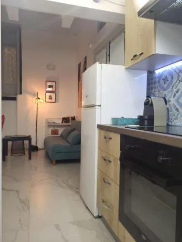 Boasting a private entrance, this air-conditioned holiday home includes 1 living room, 1 separate bedroom and 1 bathroom with a walk-in shower and a bidet. Guests can make meals in the kitchenette that has a stovetop, a refrigerator, kitchenware and an oven. The holiday home has parquet floors, a seating area with a flat-screen TV, a washing machine, a tea and coffee maker as well as a quiet street view. The unit has 2 beds.