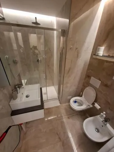 Bollitore tè/macchina caffè, Doccia, Cassaforte, TV, Aria condizionata, Asciugacapelli, Ferro da stiro, Balcone, Frigorifero, Scrivania, Ferro e asse da stiro, Prodotti da bagno in omaggio, WC, Lavastoviglie, Lavatrice, Bagno privato, Riscaldamento, Vasca o doccia, TV a schermo piatto, Insonorizzazione, Pavimento in marmo o in piastrelle, Zona pranzo, Bollitore elettrico, Utensili da cucina, Asciugamani/lenzuola disponibili a pagamento, Armadio o guardaroba, Piano cottura, Bidet, Prodotti per le pulizie, Macchina da caffè, Vista città, Terrazza, Asciugamani, Biancheria per la casa, Tavolo da pranzo, Arredamento da esterno, Zona pranzo all'aperto, Stand appendiabiti, Stendibiancheria, Carta igienica, Doccia a filo pavimento, Bottiglia d'acqua, Cioccolatini o biscotti, Pattumiere, Calici da vino, Lettini e culle per bambini, Spazzolino da denti, Shampoo, Bagnoschiuma, Cuffia da doccia, Presa elettrica vicino al letto, Adattatore, Cuscino non di piume, Cuscino ipoallergenico, Alloggio accessibile tramite ascensore, Vista su strada tranquilla, Servizio streaming (per es. Netflix), Allarme antifumo, Estintori, Accesso con chiavi, Aria condizionata indipendente in ogni alloggio, Gel igienizzante per le mani