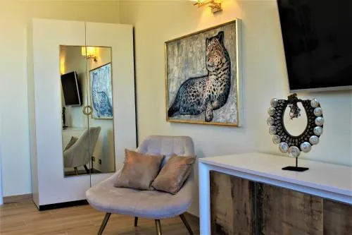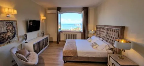 Questa suite climatizzata con ingresso indipendente offre 1 soggiorno, 1 camera da letto separata e 1 bagno con doccia e bidè. L’alloggio dispone inoltre di terrazza con vista sul mare, lavatrice e TV a schermo piatto. L’alloggio presenta 1 letto.