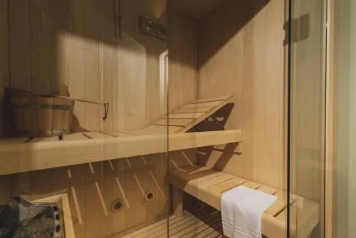 This double room offers a sauna. Providing free toiletries and bathrobes, this double room includes a private bathroom with a bath, a shower and a bidet. The spacious double room provides soundproof walls, a seating area, a wardrobe, parquet floors, as well as a flat-screen TV with streaming services. The unit offers 1 bed.