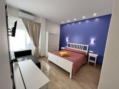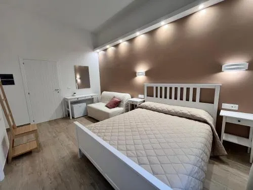 Camera matrimoniale climatizzata con scrivania, patio, vista sul giardino e bagno privato. L’alloggio dispone di 2 letti.