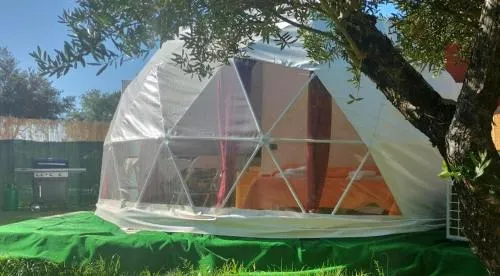 The pool with a view is the standout feature of this tent. The tent provides a wardrobe, parquet floors, as well as a private bathroom boasting a shower and a hairdryer. Guests will find a stovetop, a refrigerator and kitchenware in the kitchen. The tent also comes with a barbecue. The air-conditioned tent features a flat-screen TV, a private entrance, a tea and coffee maker, a dining area as well as garden views. The unit has 1 bed.
