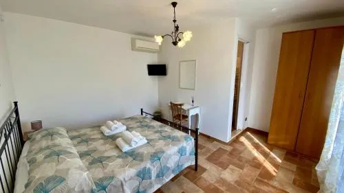 The double room features air conditioning, a coffee machine, as well as a private bathroom boasting a shower and a hairdryer. Guests will find a refrigerator and kitchenware in the kitchenette. The double room also includes a barbecue. The double room has tiled floors and provides a wardrobe, heating and garden views. The unit has 1 bed.
