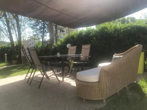 Bollitore tè/macchina caffè, Doccia, TV, Aria condizionata, Asciugacapelli, Frigorifero, Zona soggiorno, Prodotti da bagno in omaggio, WC, Forno a microonde, Lavatrice, Patio, Bagno privato, Riscaldamento, Canali satellitari, Cucina, Canali via cavo, Camino, TV a schermo piatto, Ingresso indipendente, Divano, Pavimento in marmo o in piastrelle, Vista, Zona pranzo, Bollitore elettrico, Utensili da cucina, Armadio o guardaroba, Forno, Piano cottura, Barbecue, Bidet, Vista giardino, Prodotti per le pulizie, Macchina da caffè, Asciugamani, Biancheria per la casa, Tavolo da pranzo, Arredamento da esterno, Zona pranzo all'aperto, Intera unità situata al piano terra, Semi-indipendente, Stand appendiabiti, Stendibiancheria, Carta igienica, Copriprese di sicurezza per bambini, Cancelletti di sicurezza per bambini, Divano letto, Teli, Pattumiere, Shampoo, Balsamo, Bagnoschiuma, Presa elettrica vicino al letto, Cuscino non di piume, Allarme antifumo, Estintori