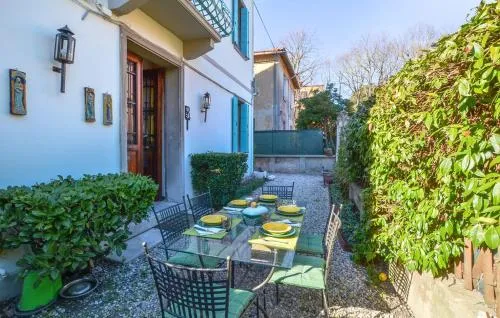 Boasting a private entrance, this air-conditioned holiday home features 1 living room, 2 separate bedrooms and 1 bathroom with a shower and a bidet. The holiday home's kitchen, which features kitchenware, is available for cooking and storing food. The holiday home has parquet floors, a seating area with a flat-screen TV, a washing machine, a wardrobe as well as garden views. The unit has 5 beds.