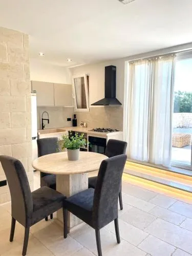 Doccia, TV, Aria condizionata, Asciugacapelli, Angolo cottura, Accappatoio, Frigorifero, Zona soggiorno, WC, Lavastoviglie, Bagno privato, Riscaldamento, Cucina, Vasca o doccia, TV a schermo piatto, Ingresso indipendente, Divano, Pavimento in marmo o in piastrelle, Zona pranzo, Utensili da cucina, Asciugamani/lenzuola disponibili a pagamento, Armadio o guardaroba, Forno, Piano cottura, Bidet, Prodotti per le pulizie, Macchina da caffè, Terrazza, Asciugamani, Biancheria per la casa, Tavolo da pranzo, Seggiolone, Arredamento da esterno, Zona pranzo all'aperto, Stendibiancheria, Carta igienica, Divano letto, Piscina di acqua salata, Teli, Zona acqua bassa, Bottiglia d'acqua, Calici da vino, Lettini e culle per bambini, Allarme antifumo, Aria condizionata indipendente in ogni alloggio, Gel igienizzante per le mani