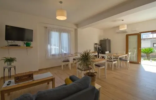 Bollitore tè/macchina caffè, Doccia, Aria condizionata, Asciugacapelli, Frigorifero, Scrivania, Prodotti da bagno in omaggio, WC, Forno a microonde, Bagno privato, Riscaldamento, Pavimento in marmo o in piastrelle, Vista, Bollitore elettrico, Armadio o guardaroba, Bidet, Vista giardino, Macchina da caffè, Terrazza, Asciugamani, Biancheria per la casa, Arredamento da esterno, Zona pranzo all'aperto, Intera unità situata al piano terra, Stendibiancheria, Carta igienica, Giochi da tavolo/puzzle, Libri, DVD o musica per bambini, WC rialzato, Lavabo più basso, Campanello di emergenza nel bagno, Cioccolatini o biscotti, Pattumiere, Shampoo, Bagnoschiuma, Presa elettrica vicino al letto, Cuscino non di piume, Cuscino ipoallergenico, Allarme antifumo, Estintori, Accesso con chiavi, Rilevatore di monossido di carbonio