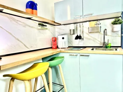 Featuring a private entrance, this air-conditioned holiday home is comprised of a kitchen, 1 bedroom and 1 bathroom with a shower and a bidet. The fully equipped kitchen features a stovetop, a refrigerator and kitchenware. The holiday home offers a flat-screen TV with cable channels, soundproof walls, a tea and coffee maker, a dining area as well as an inner courtyard view. The unit offers 2 beds.