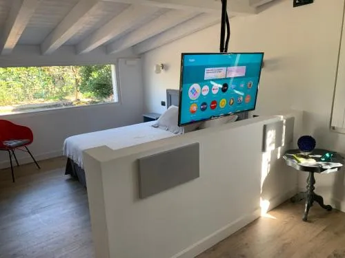 Boasting a private entrance, this air-conditioned holiday home includes 1 living room, 1 separate bedroom and 1 bathroom with a shower and a bidet. In the well-equipped kitchen, guests will find a stovetop, a refrigerator, a dishwasher and kitchenware. The holiday home offers a tea and coffee maker, a safe deposit box, a barbecue, a flat-screen TV with streaming services, as well as garden views. The unit has 2 beds.