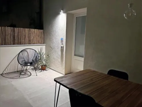 Featuring a private entrance, this air-conditioned holiday home comprises 1 living room, 1 separate bedroom and 1 bathroom with a walk-in shower and a bidet. Guests will find a stovetop, a refrigerator, a dishwasher and kitchenware in the fully equipped kitchen. The holiday home also provides guests with a barbecue. Boasting a terrace with garden views, this holiday home also provides a washing machine and a flat-screen TV with streaming services. The unit offers 2 beds.