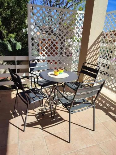 Bollitore tè/macchina caffè, Doccia, TV, Aria condizionata, Asciugacapelli, Ferro da stiro, Balcone, Frigorifero, Scrivania, Ferro e asse da stiro, WC, Patio, Bagno privato, Riscaldamento, Cucina, Canali via cavo, Vasca o doccia, TV a schermo piatto, Ingresso indipendente, Insonorizzazione, Pavimento in marmo o in piastrelle, Zona pranzo, Bollitore elettrico, Utensili da cucina, Armadio o guardaroba, Forno, Piano cottura, Tostapane, Bidet, Vista giardino, Prodotti per le pulizie, Macchina da caffè, Asciugamani, Biancheria per la casa, Tavolo da pranzo, Arredamento da esterno, Zona pranzo all'aperto, Intera unità situata al piano terra, Indipendente, Stand appendiabiti, Stendibiancheria, Carta igienica, Copriprese di sicurezza per bambini, Libri, DVD o musica per bambini, Bottiglia d'acqua, Cioccolatini o biscotti, Pattumiere, Shampoo, Bagnoschiuma, Presa elettrica vicino al letto, Adattatore, Cuscino non di piume, Vista cortile interno, Vista su strada tranquilla, Armadietti, Estintori, Accesso con chiavi, Rilevatore di monossido di carbonio, Aria condizionata indipendente in ogni alloggio, Gel igienizzante per le mani