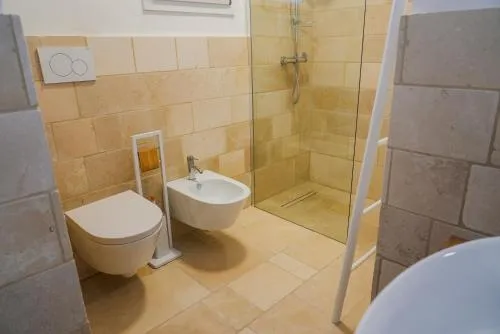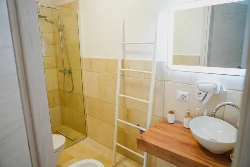 Doccia, Aria condizionata, Asciugacapelli, Frigorifero, Scrivania, Prodotti da bagno in omaggio, WC, Patio, Bagno privato, Riscaldamento, Vasca o doccia, Servizi igienici aggiuntivi, TV a schermo piatto, Ingresso indipendente, Divano, Insonorizzazione, Pavimento in marmo o in piastrelle, Armadio o guardaroba, Bidet, Vista mare, Asciugamani, Stand appendiabiti, Stendibiancheria, Carta igienica, Divano letto, Doccia a filo pavimento, Teli, Bottiglia d'acqua, Pattumiere, Shampoo, Balsamo, Bagnoschiuma, Presa elettrica vicino al letto, Cuscino non di piume, Cuscino ipoallergenico, Accesso con chiavi, Aria condizionata indipendente in ogni alloggio, Gel igienizzante per le mani