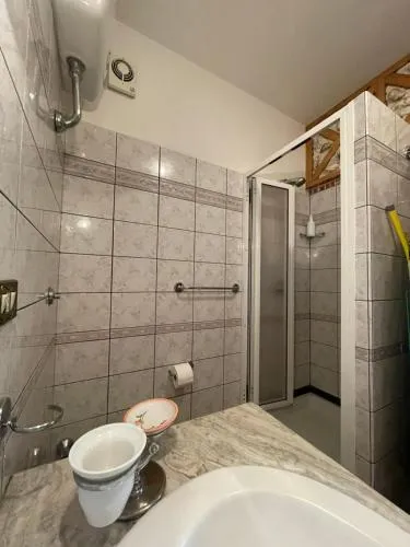 Bollitore tè/macchina caffè, Doccia, Vasca, TV, Aria condizionata, Asciugacapelli, Ferro da stiro, Frigorifero, Scrivania, Ferro e asse da stiro, Zona soggiorno, WC, Forno a microonde, Lavatrice, Patio, Bagno privato, Riscaldamento, Cucina, Canali via cavo, Vasca o doccia, TV a schermo piatto, Ingresso indipendente, Divano, Pavimento in marmo o in piastrelle, Vista, Zona pranzo, Zanzariera, Armadio o guardaroba, Forno, Piano cottura, Tostapane, Barbecue, Bidet, Vista mare, Vista giardino, Vista montagna, Vista luogo di interesse, Prodotti per le pulizie, Macchina da caffè, Terrazza, Asciugamani, Biancheria per la casa, Tavolo da pranzo, Arredamento da esterno, Zona pranzo all'aperto, Intera unità situata al piano terra, Intera unità accessibile ai disabili, Semi-indipendente, Stendibiancheria, Carta igienica, Divano letto, Pattumiere, Calici da vino, Lettini e culle per bambini, Shampoo, Bagnoschiuma, Cuscino non di piume, Vista cortile interno, Allarme antifumo, Accesso con chiavi, Aria condizionata indipendente in ogni alloggio, Gel igienizzante per le mani