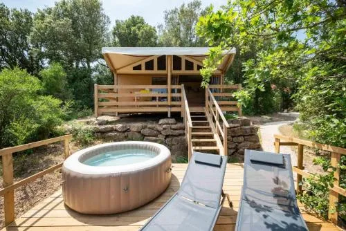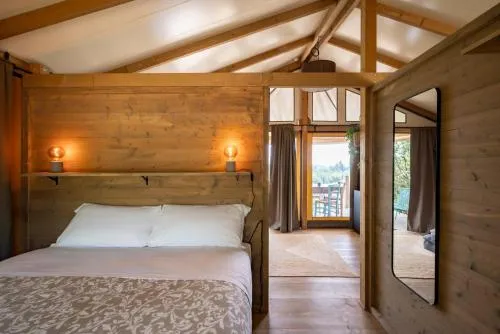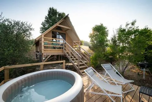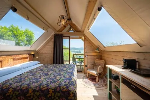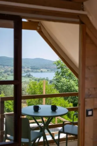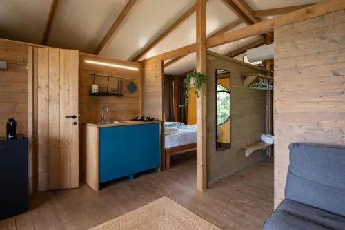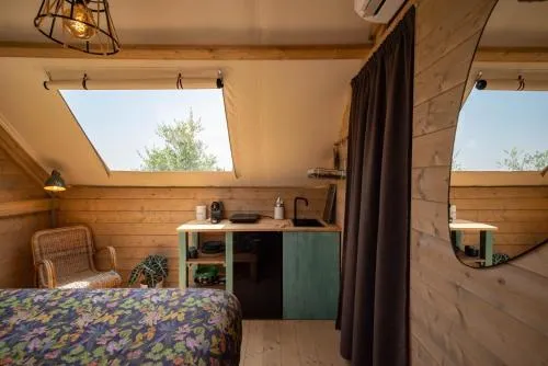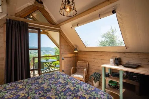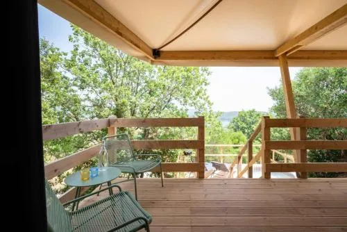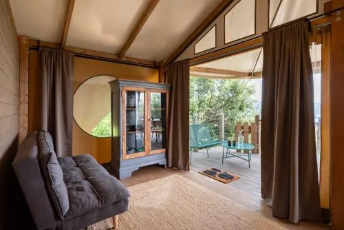 This tent features a pool with a view. Guests will find a stovetop, a refrigerator and kitchenware in the kitchenette. The tent also has a barbecue. The tent offers air conditioning, a tea and coffee maker, a terrace with lake views as well as a private bathroom featuring a shower. The unit offers 1 bed.