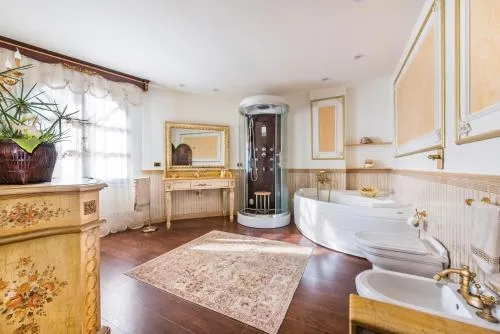 | Bambini con letti supplementari | Sono ammessi bambini di tutte le età. I bambini di età da 1 anno - fino a 2 anni possono soggiornare gratis in una culla (se disponibile). I bambini fino a 2 anni inclusi possono soggiornare gratis in uno dei letti già presenti. Gli adulti possono soggiornare al costo di € 300 a persona per soggiorno in un letto extra (se disponibile). Qualsiasi tipo di letto supplementare o culla è disponibile su richiesta e previa conferma da parte della struttura. I supplementi non sono inclusi nell’importo totale e devono essere pagati separatamente durante il soggiorno. |