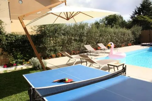Bollitore tè/macchina caffè, Minibar, Doccia, Vasca, TV, Aria condizionata, Asciugacapelli, Vasca idromassaggio, Ferro da stiro, Balcone, Accappatoio, Vasca da bagno con idromassaggio, Frigorifero, Scrivania, Ferro e asse da stiro, Zona soggiorno, Prodotti da bagno in omaggio, WC, Lavastoviglie, Bagno privato, Riscaldamento, Cabina armadio, Cucina, Vasca o doccia, TV a schermo piatto, Divano, Vista, Parquet o pavimento in legno, Zona pranzo, Bollitore elettrico, Utensili da cucina, Zanzariera, Asciugamani/lenzuola disponibili a pagamento, Piscina privata a uso esclusivo, Armadio o guardaroba, Forno, Piano cottura, Barbecue, Bidet, Vista mare, Vista giardino, Vista piscina, Prodotti per le pulizie, Macchina da caffè, Terrazza, Asciugamani, Biancheria per la casa, Tavolo da pranzo, Arredamento da esterno, Zona pranzo all'aperto, Piani superiori accessibili solo tramite scale, Stand appendiabiti, Stendibiancheria, Carta igienica, Libri, DVD o musica per bambini, Piscina di acqua salata, Teli, Bottiglia d'acqua, Pattumiere, Calici da vino, Lettini e culle per bambini, Shampoo, Balsamo, Bagnoschiuma, Presa elettrica vicino al letto, Cuscino non di piume, Vista cortile interno, Servizio streaming (per es. Netflix), Armadietti, Allarme antifumo, Estintori, Accesso con chiavi, Accesso con chiavi magnetiche, Aria condizionata indipendente in ogni alloggio, Gel igienizzante per le mani