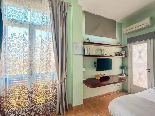 Camera matrimoniale climatizzata dotata di TV satellitare a schermo piatto, bagno privato e terrazza con vista sul mare. L’alloggio dispone di 2 letti.