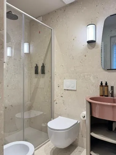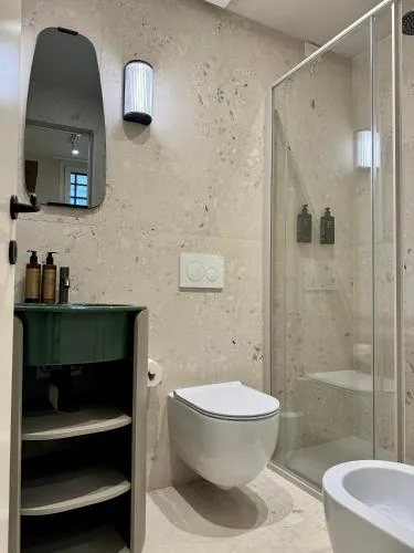Comodità Doccia, Aria condizionata, Asciugacapelli, Ferro da stiro, Zona soggiorno, WC, Bagno privato, Riscaldamento, Vasca o doccia, TV a schermo piatto, Ingresso indipendente, Vista, Utensili da cucina, Armadio o guardaroba, Bidet, Vista città, Asciugamani, Carta igienica, Campanello di emergenza nel bagno, Cioccolatini o biscotti, Pattumiere, Calici da vino, Shampoo, Bagnoschiuma, Presa elettrica vicino al letto, Allarme antifumo, Estintori