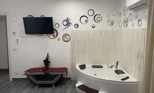 This double room features a hot tub. Providing free toiletries and bathrobes, this double room includes a private bathroom with a bath, a shower and a bidet. The spacious air-conditioned double room provides a flat-screen TV with cable channels, a private entrance, a minibar, a tea and coffee maker as well as city views. The unit offers 1 bed.