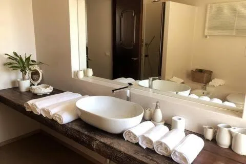Boasting a private entrance, this air-conditioned holiday home includes 1 living room, 4 separate bedrooms and 4 bathrooms with a shower and a bidet. The well-equipped kitchen has a stovetop, a refrigerator, a dishwasher and kitchenware. The spacious holiday home offers a tea and coffee maker, a seating area, a dining area as well as a terrace with garden views. The unit has 6 beds.